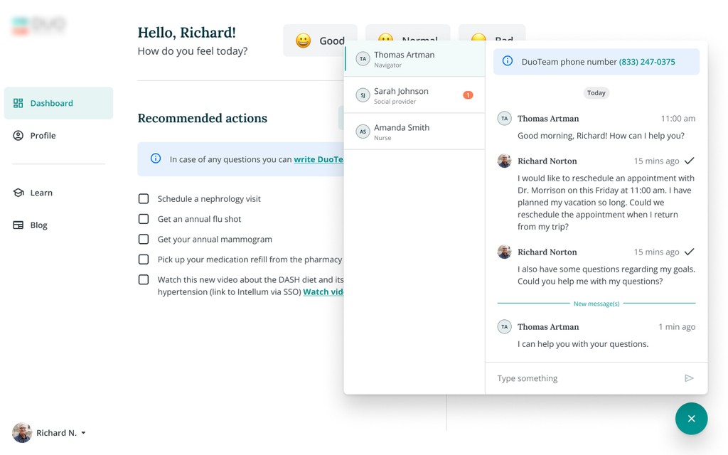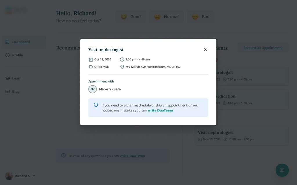 Patients with chronic kidney conditions lack a unified, accessible, and secure platform to manage their care, access medical records, and communicate with clinical teams. Disconnected systems and manual workflows reduce engagement, delay support, and increase operational overhead. The organization needs a modern, cross-platform solution that integrates seamlessly with internal systems, enhances communication, and supports a simple, accessible experience for elderly users.